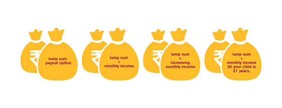 The payout option that you choose will determine the financial security of your family in your absence. Based on your family’s needs you can decide whether you want to go for a lump sum payout option, or lump sum + monthly income option, or lump sum + increasing monthly income, or lump sum + monthly income till your child is 21 years.