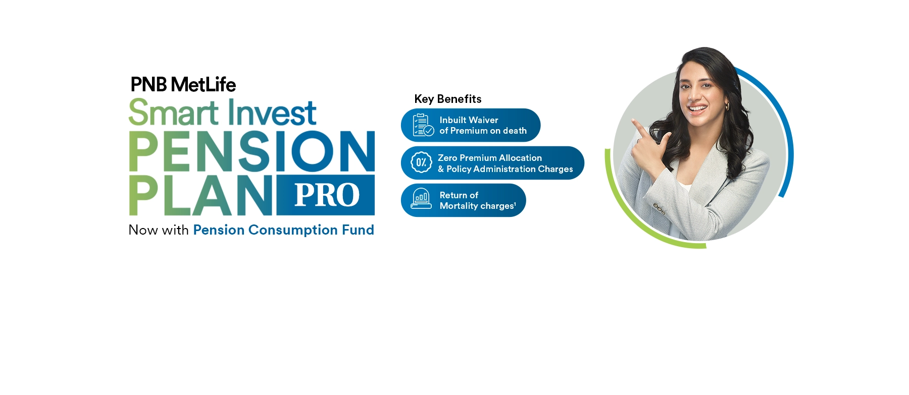 Unit Linked Life Insurance products are different from the traditional insurance products and are subject to the risk factors. The premium paid in Unit Linked Insurance policies are subject to investment risks associated with capital markets and the NAVs of the units may go up or down based on the performance of fund and factors influencing the capital market and the insured is responsible for his/her decisions. PNB MetLife India Insurance Company Limited is only the name of the Life Insurance Company and PNB MetLife Smart Invest Pension Plan Pro is only the name of the unit linked insurance contract and does not in any way indicate the quality of the contract, its future prospects or returns. Please know the associated risks and the applicable charges, from your Insurance agent or the Intermediary or policy document issued by the insurance company. The various funds offered under this contract are the names of the funds and do not in any way indicate the quality of these plans, their future prospects and returns. The past performance of the funds is not indicative of the future performance. The policyholder can know the value of policy wise units as per the FORM D02 through a secured login on the PNB MetLife website (www.pnbmetlife.com) Tax benefits are as per the Income Tax Act, 1961, & are subject to amendments made thereto from time to time. Please consult your tax consultant for more details. Goods and Services Tax (GST) shall be levied as per prevailing tax laws which are subject from time to time. For more details on risk factors, terms and conditions, please read the sales brochure before concluding any sale. For Further details on all the conditions exclusions related to product, please contact our insurance advisors.